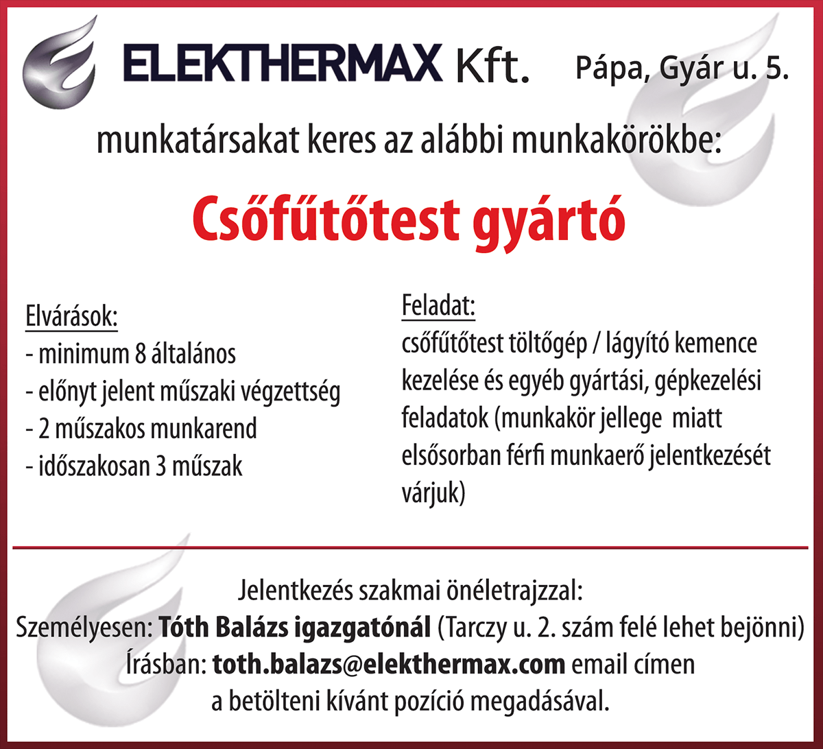 Az álláshirdetéshez kapcsolódó kapcsolati információkat keresse a hirdetésben!