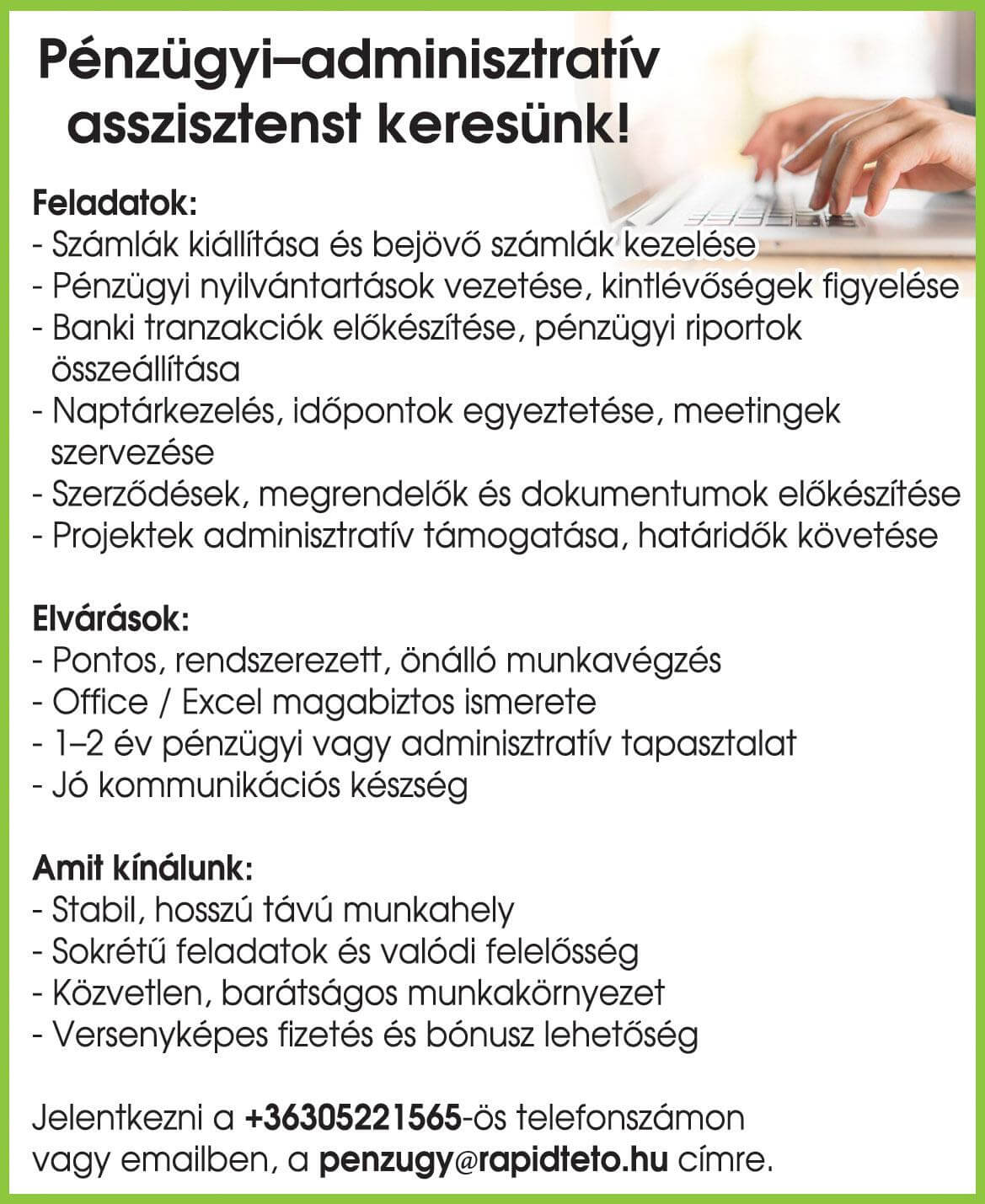 Pénzügyi–adminisztratív asszisztenst keresünk!
