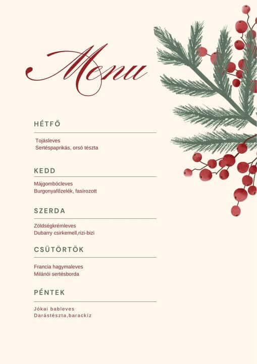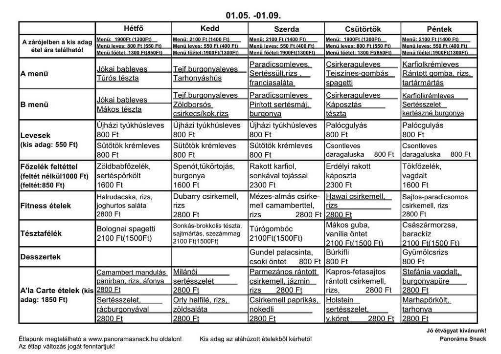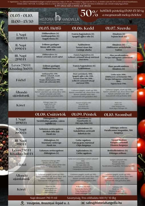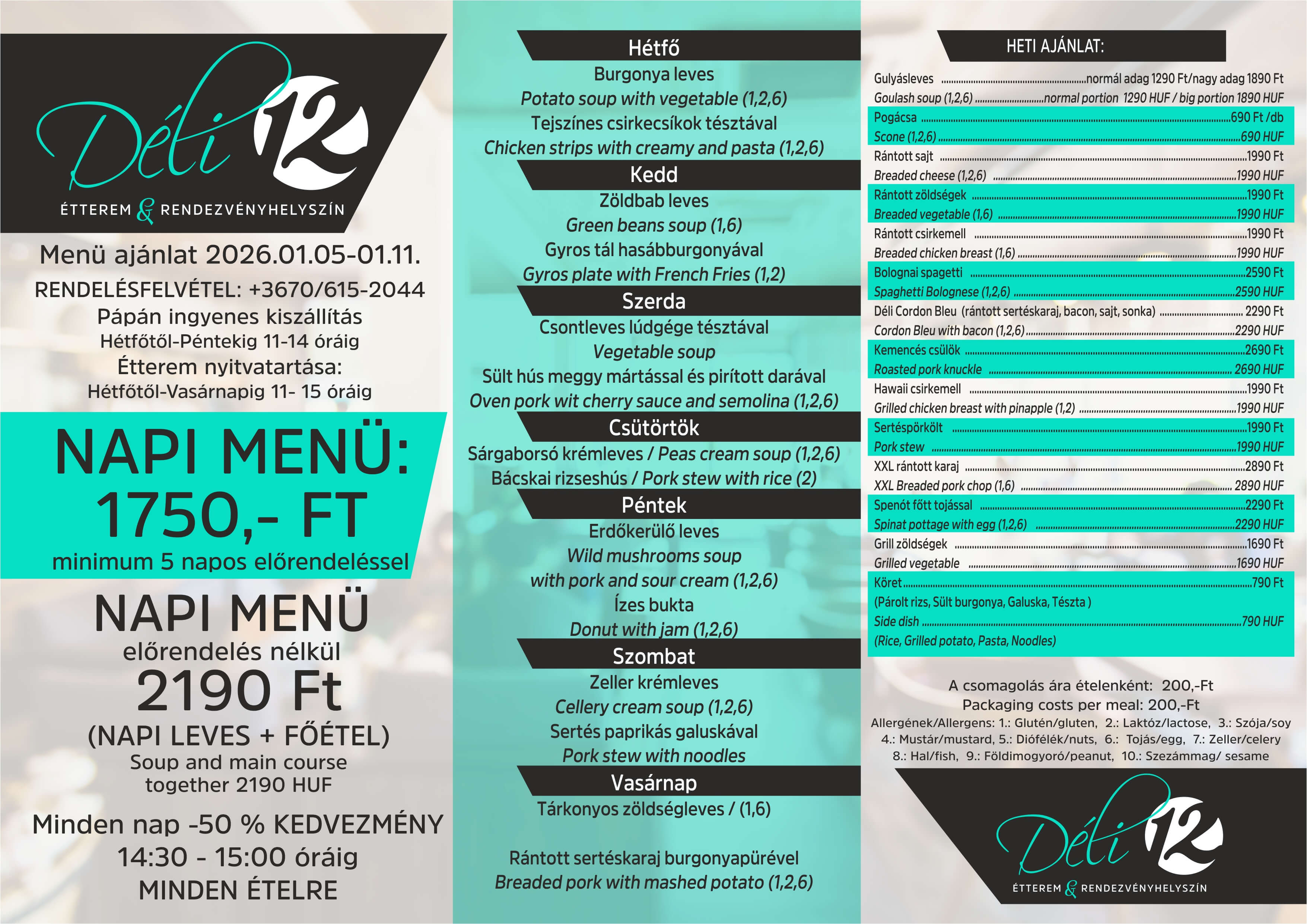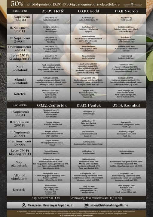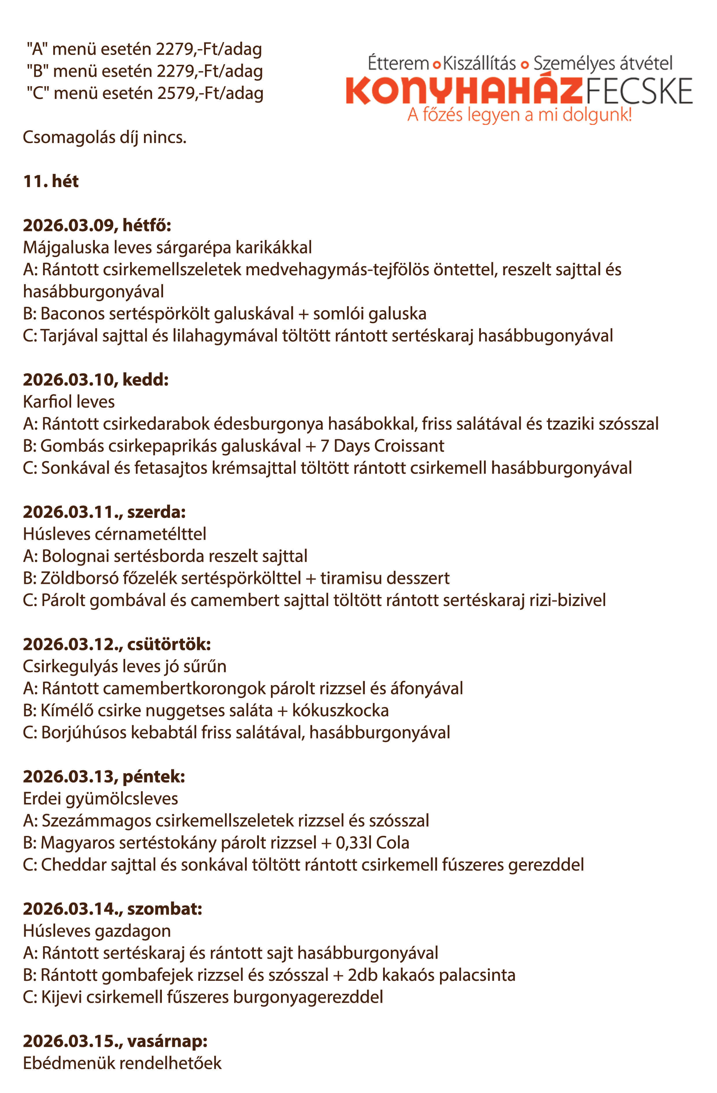 Menü fogyasztás: minden nap 11.00-14.00-ig