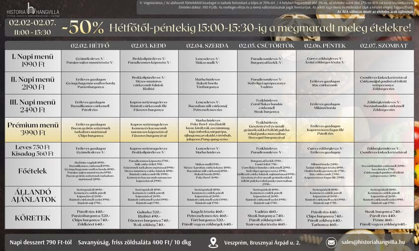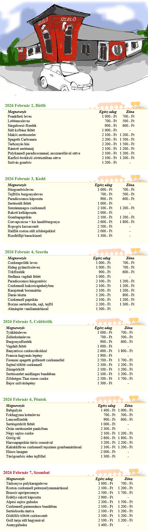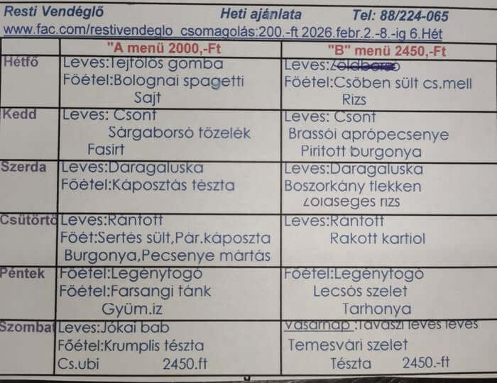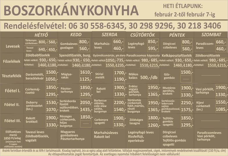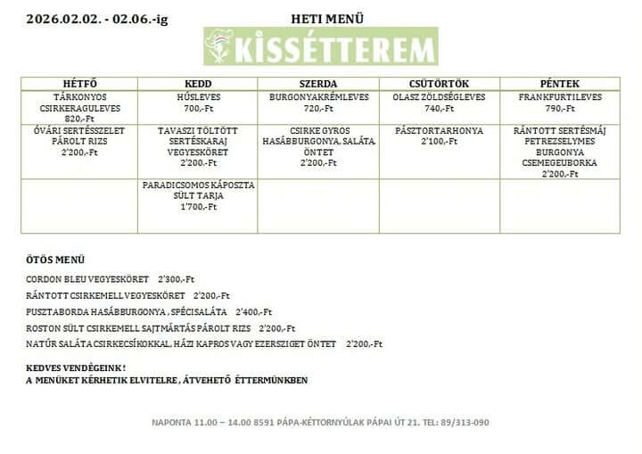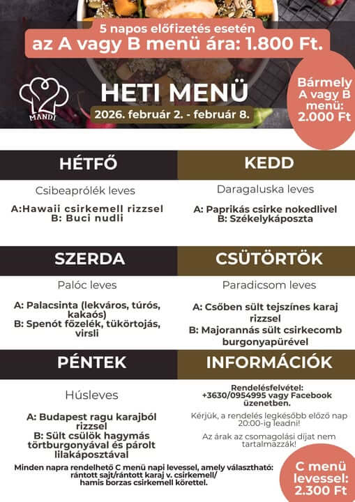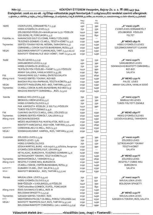 A heti menü ára 1.090 Ft / nap