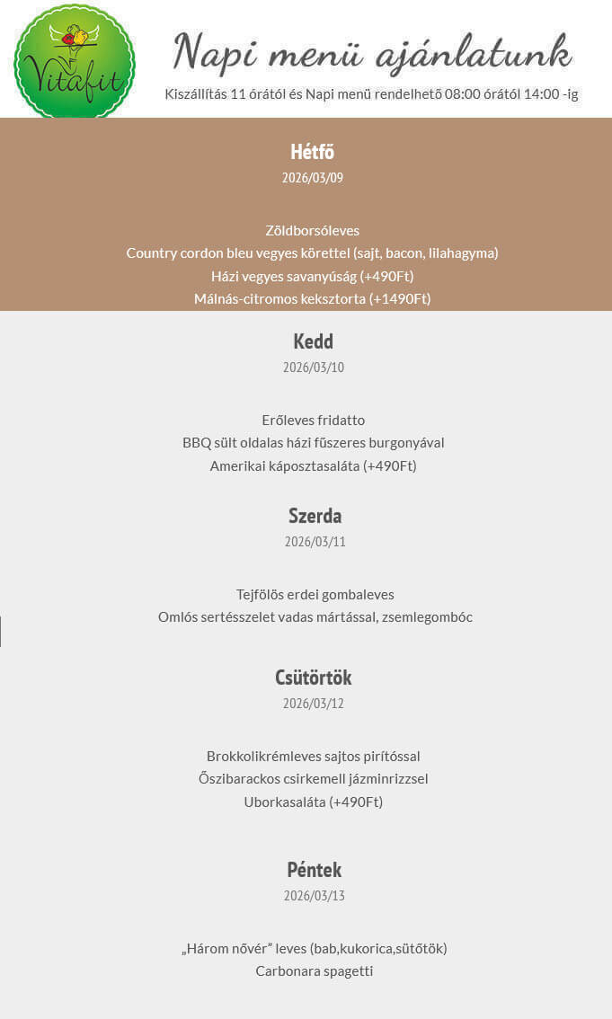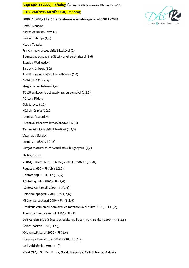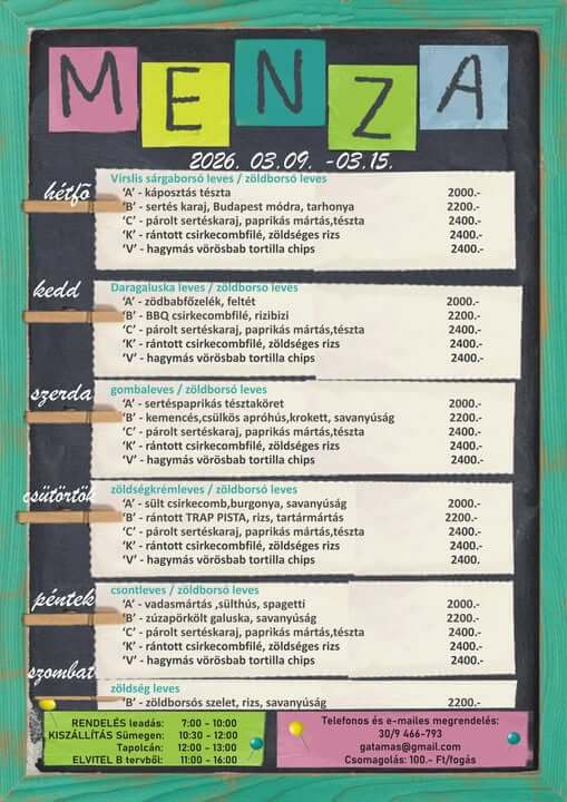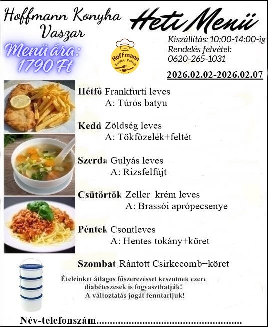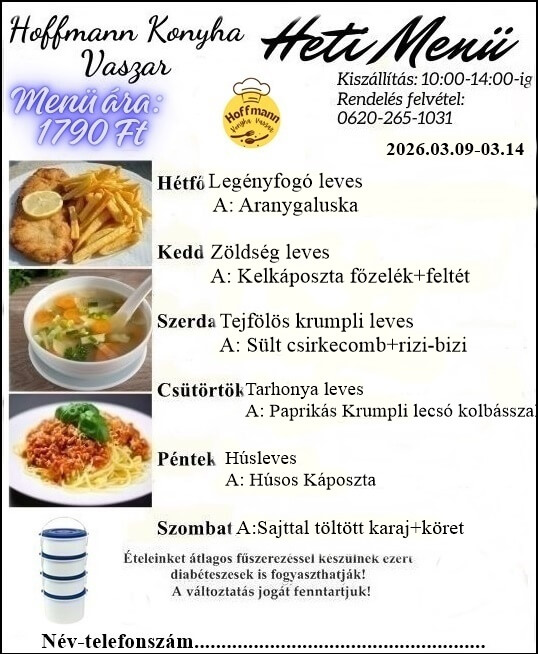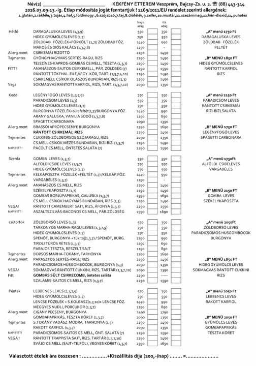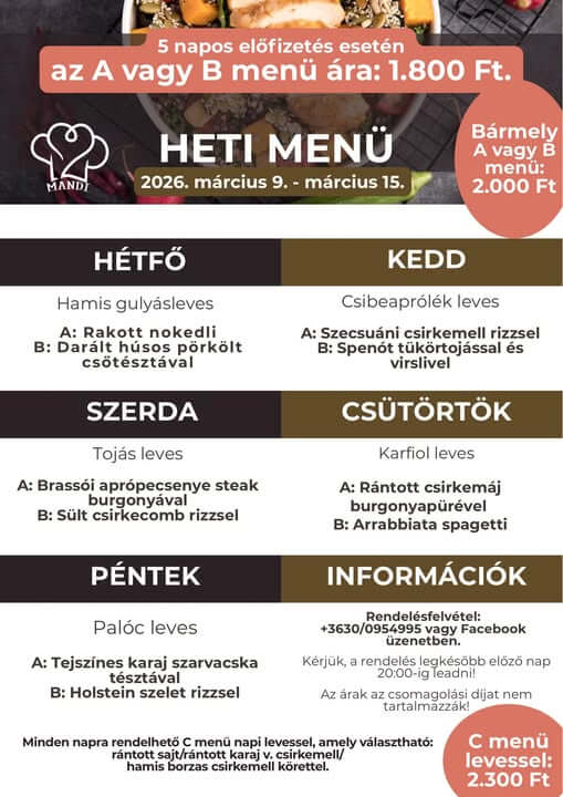 Heti menü esetén új rendelést legkorábban a következő napra tudunk felvenni.
