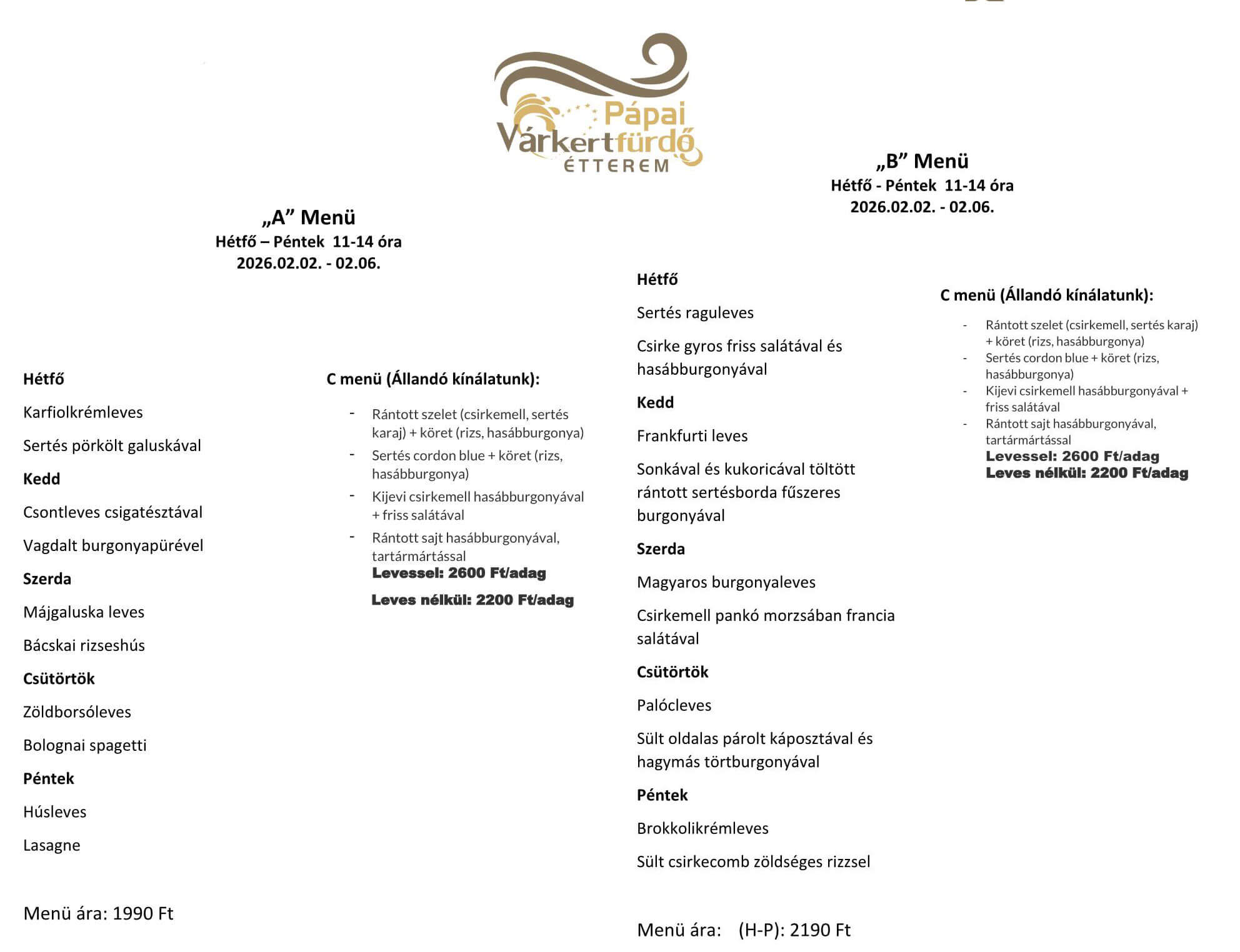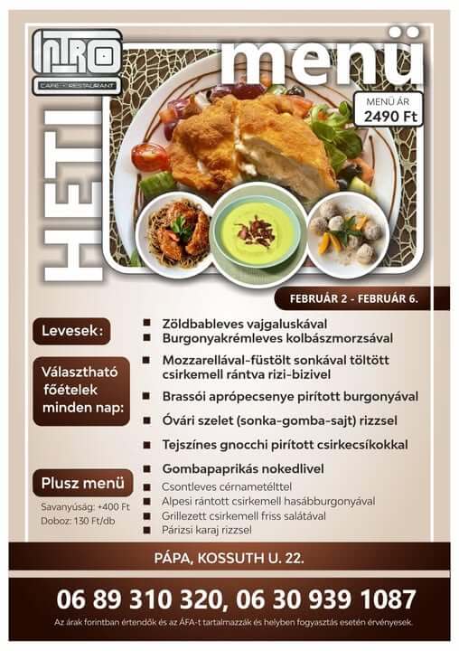 Az étlap módosítás jogát fenntartjuk.