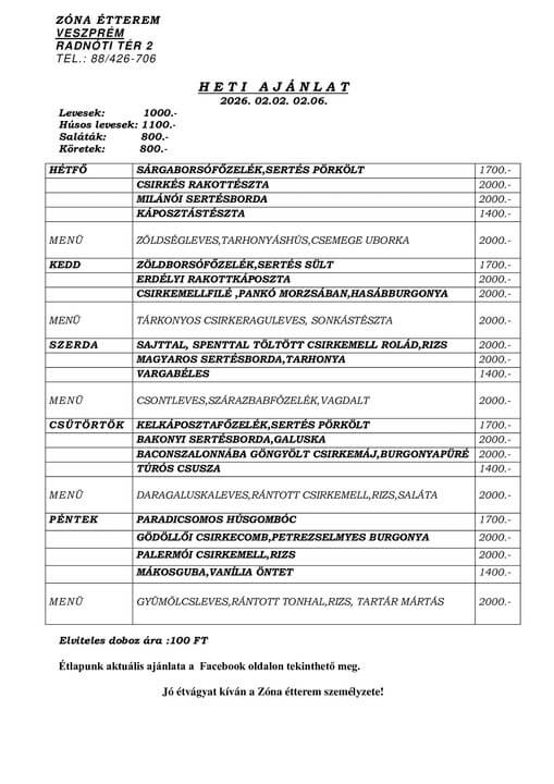 Magyaros ízek, szolid árak! Zóna adagot is felszolgálunk!
