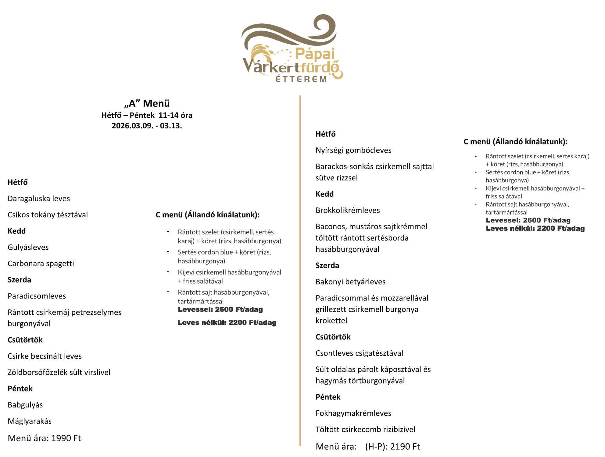 Weboldal: https://varkertfurdo.hu/papai-varkert-etterem/