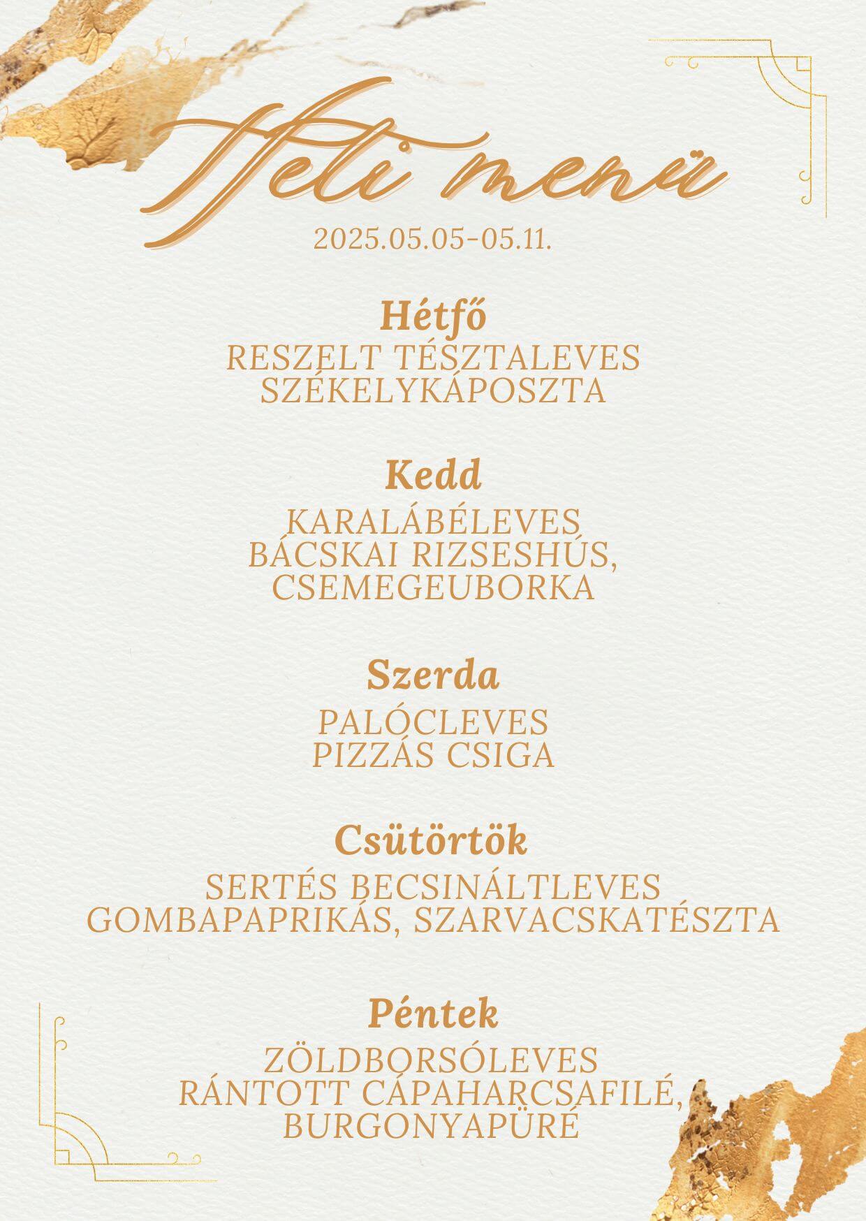 Déli menü hétfőtől szombatig 11-15 óra között