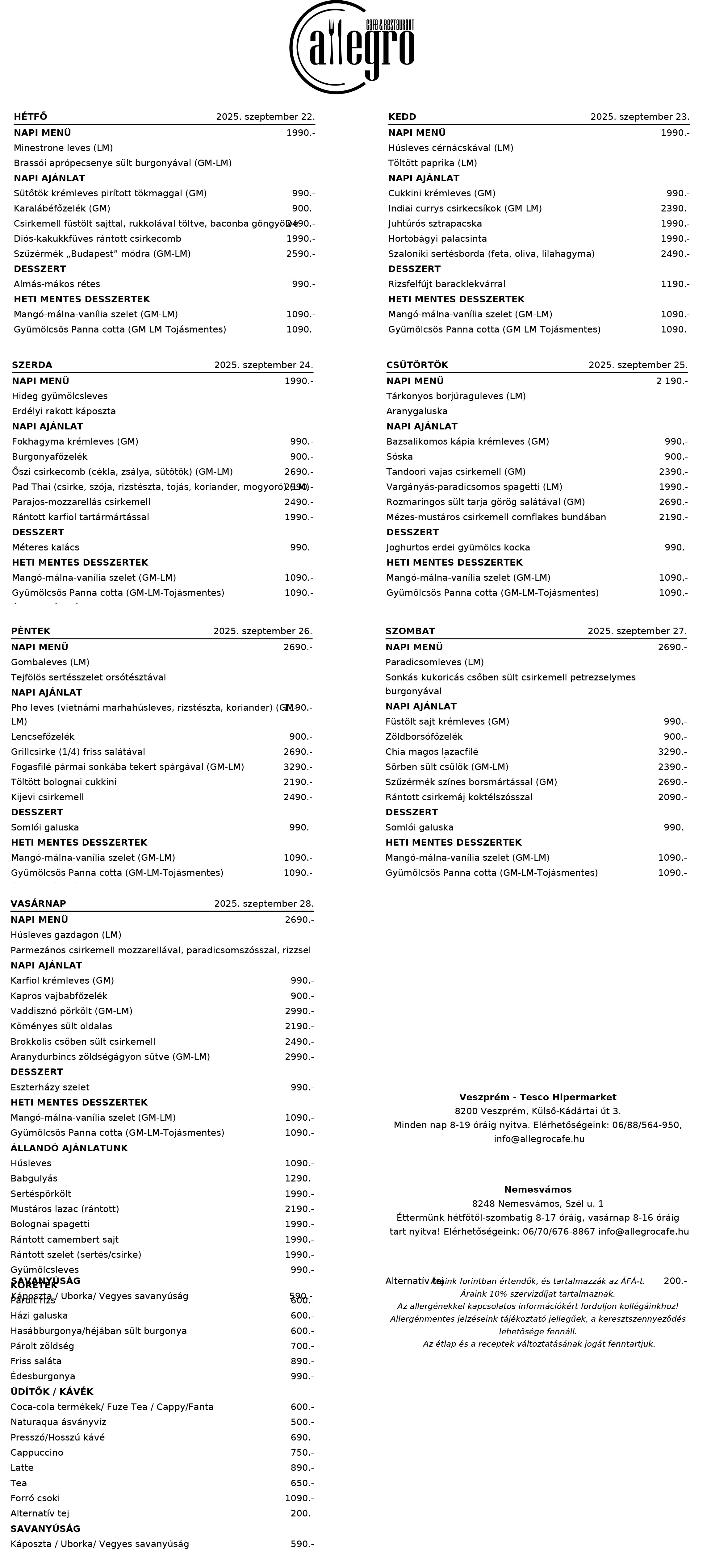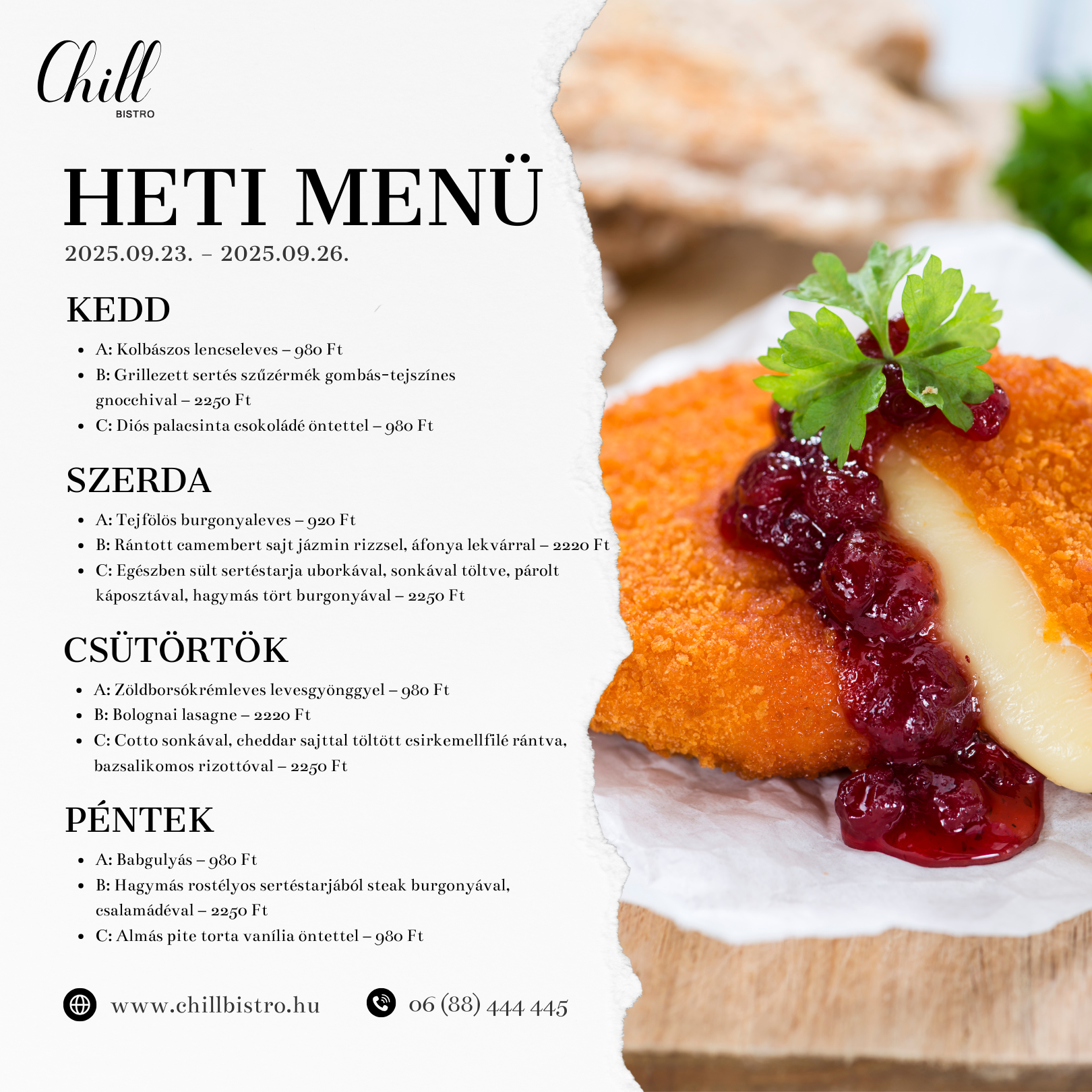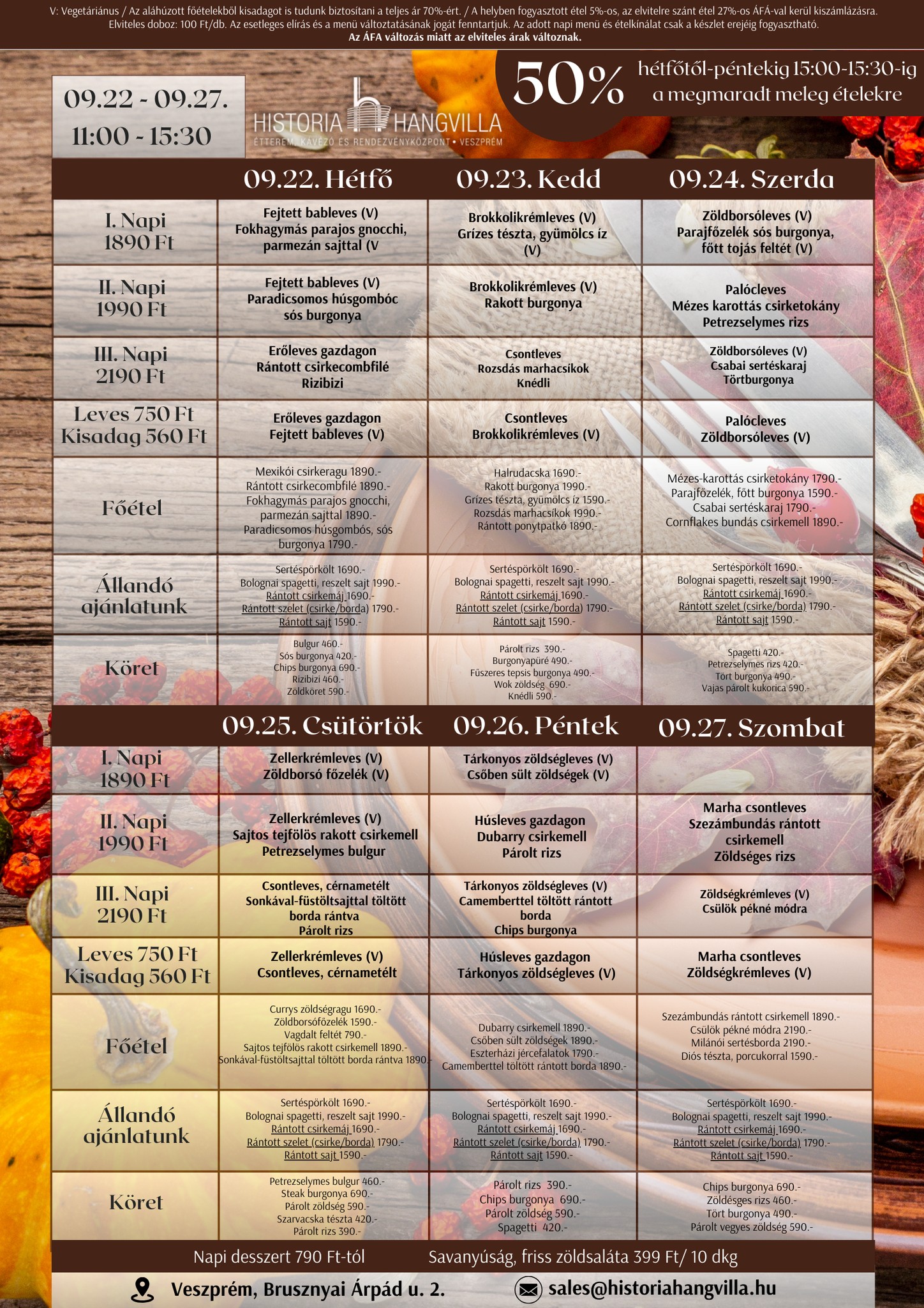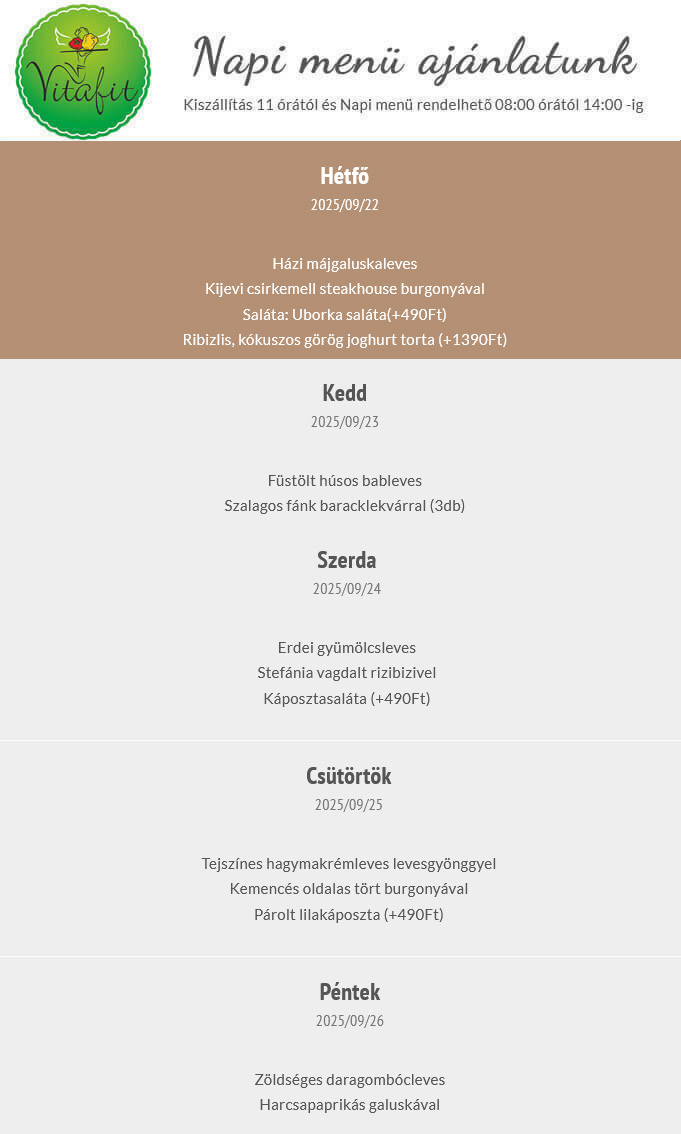 Menü fogyasztás: minden nap 11.00-14.00-ig