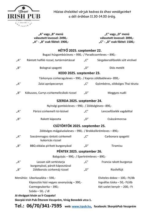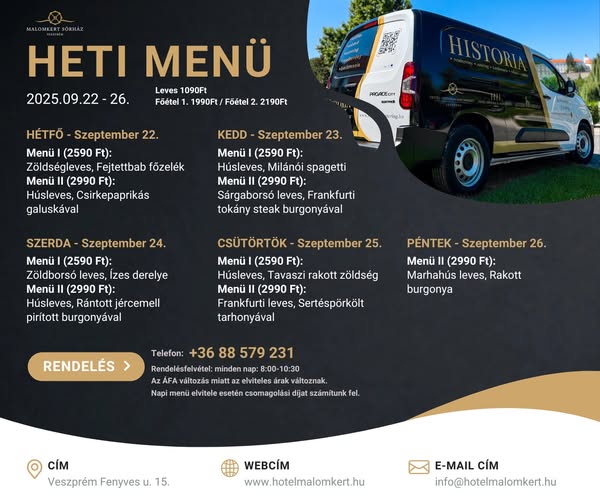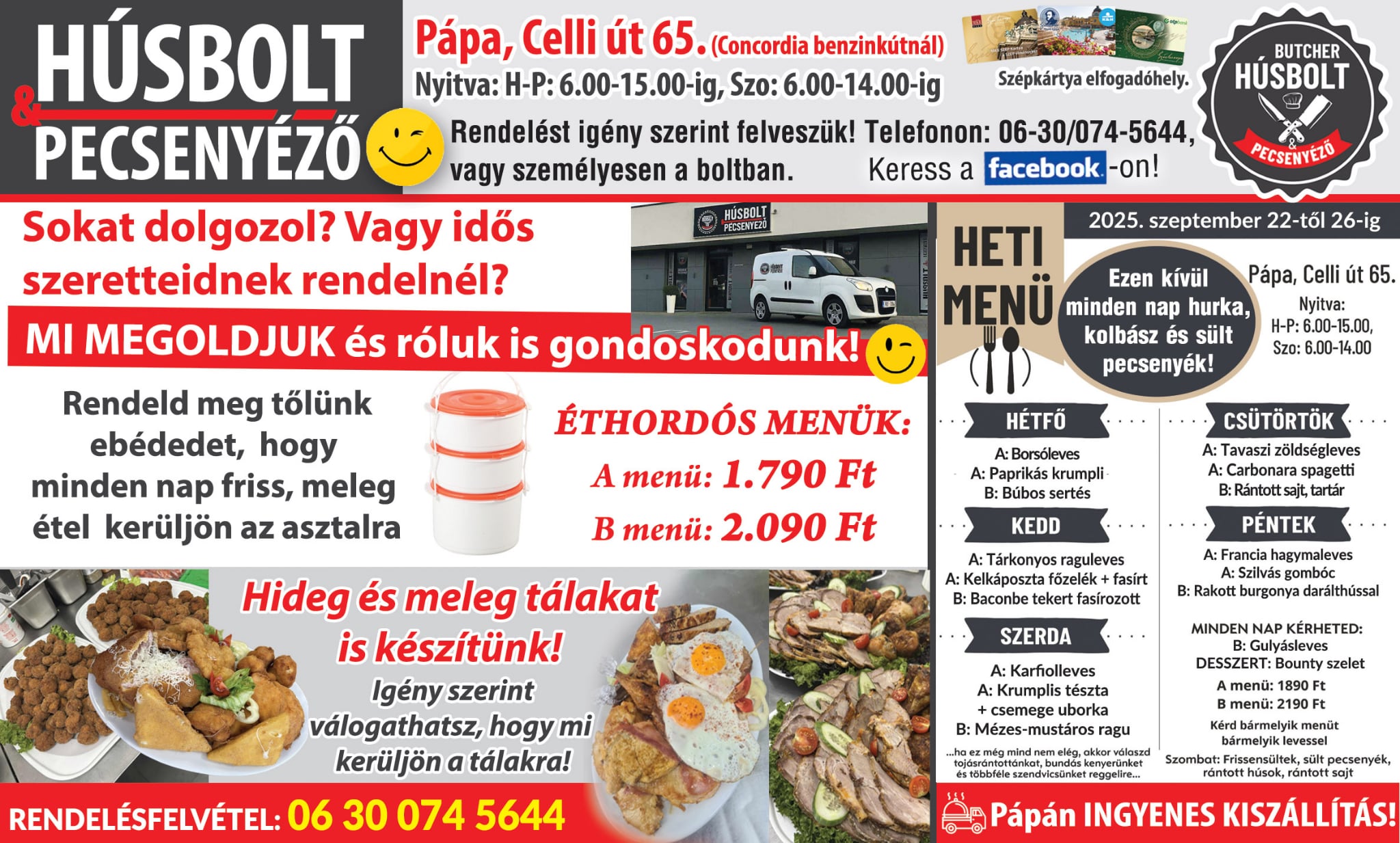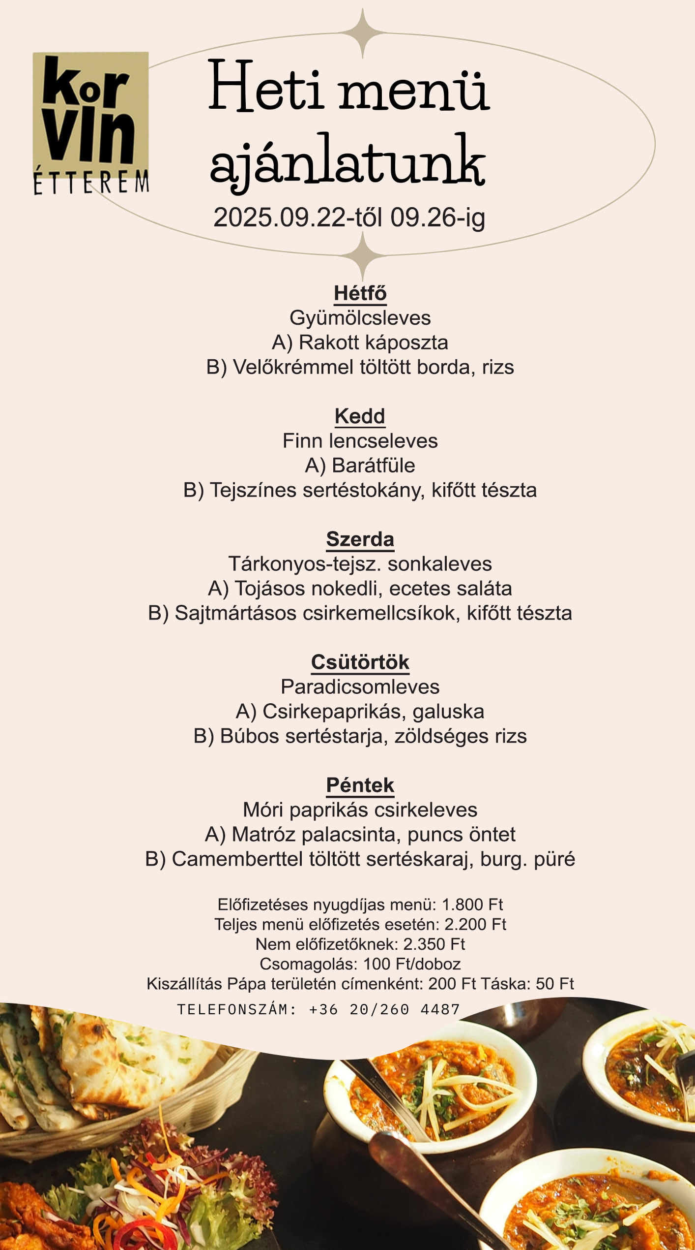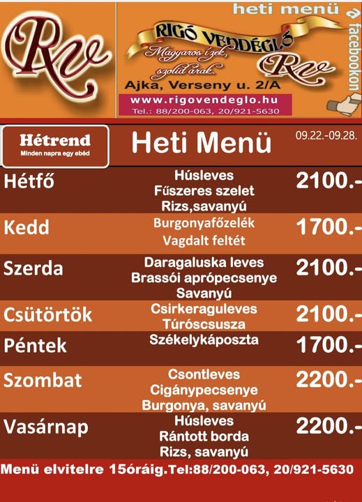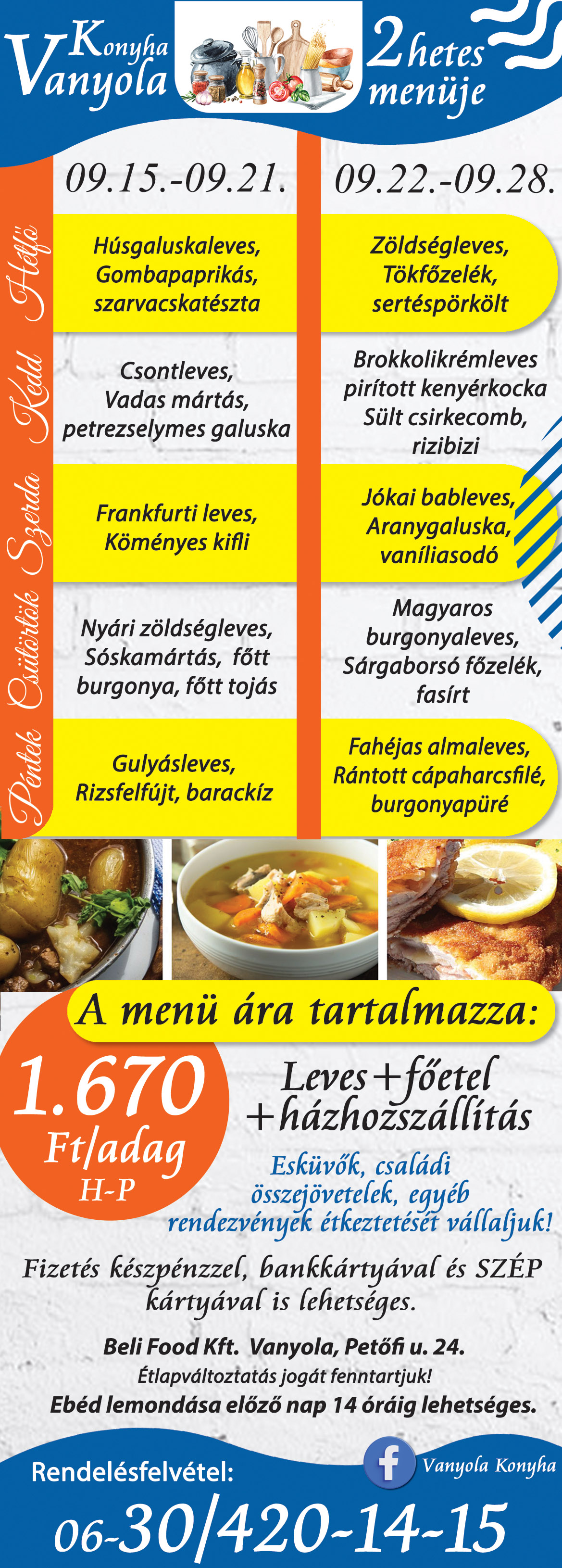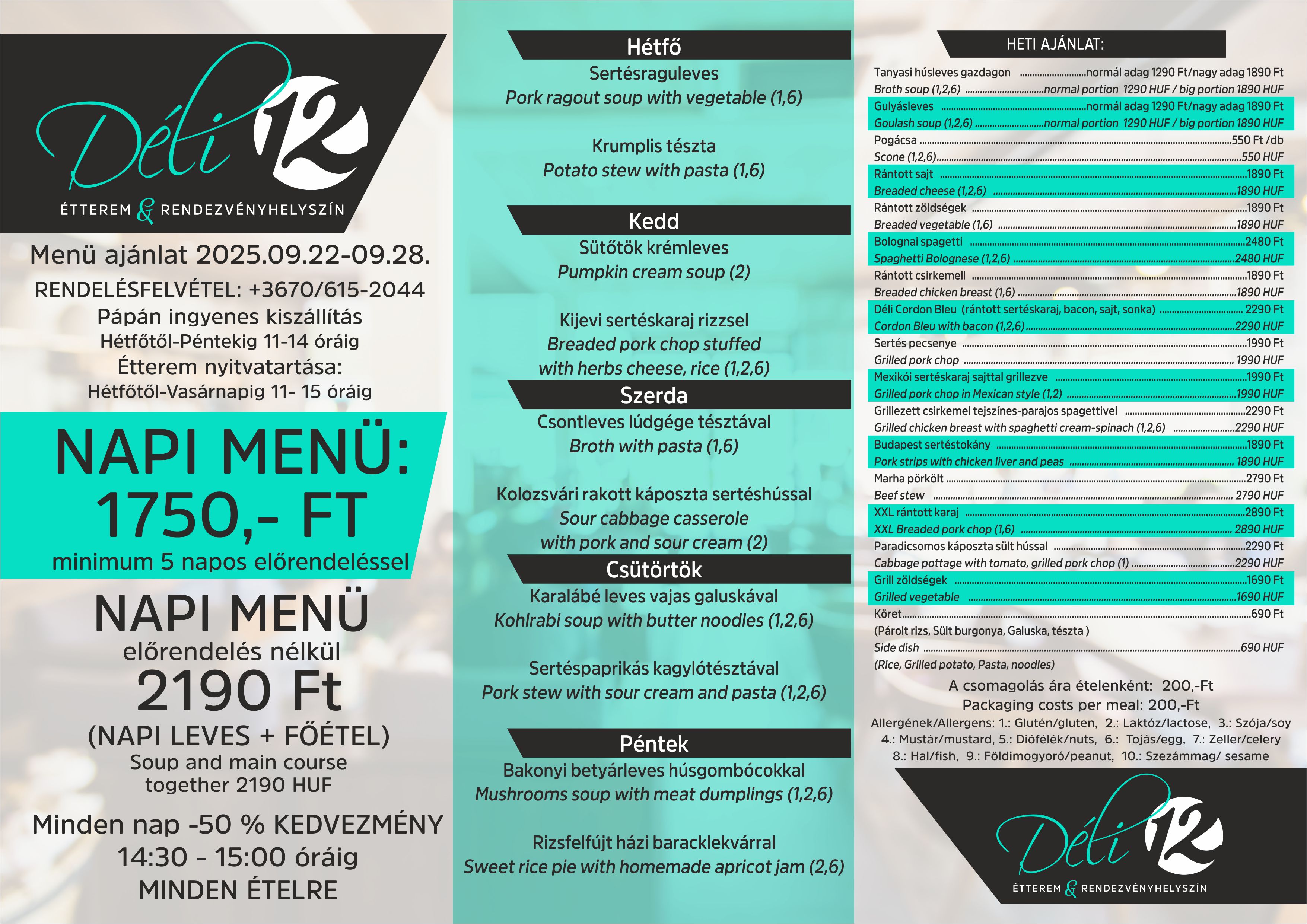Előrendelést felveszünk előző nap 19 óráig. (előrendelés nélkül csak a készlet erejéig tudjuk kiszolgálni vendégeinket) A pénteki menük nagy érdeklődésére való tekintettel, érdemes már szerdán leadni az előrendelést.