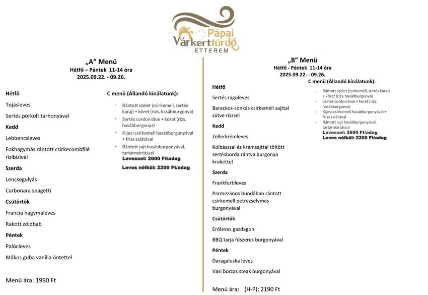 Weboldal: https://varkertfurdo.hu/papai-varkert-etterem/