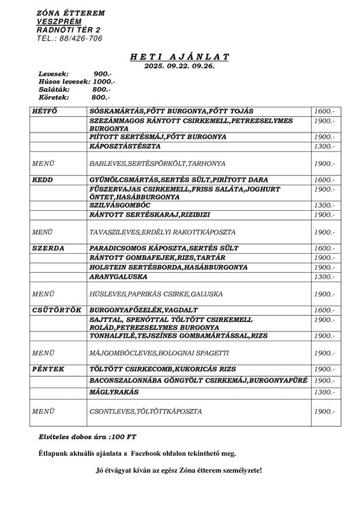 Magyaros ízek, szolid árak! Zóna adagot is felszolgálunk!