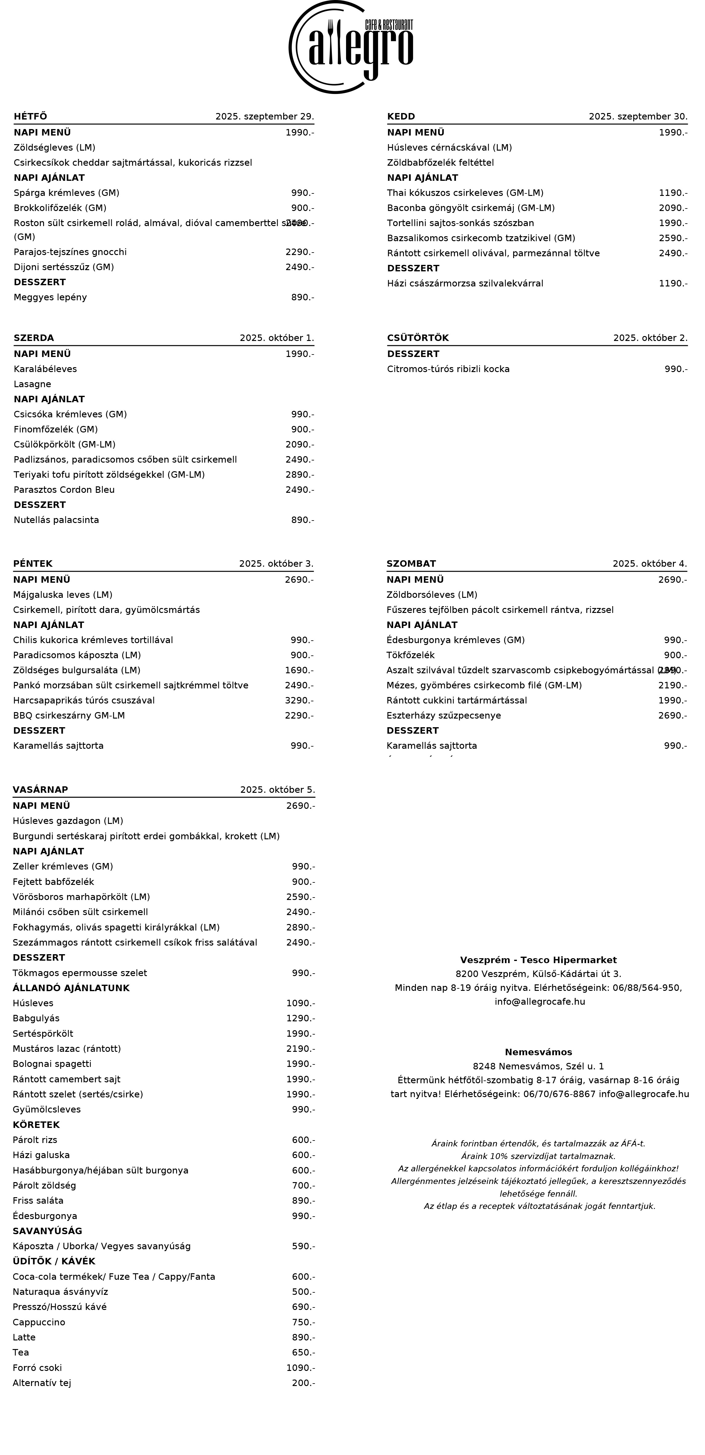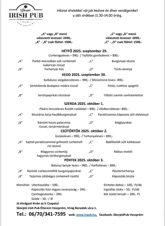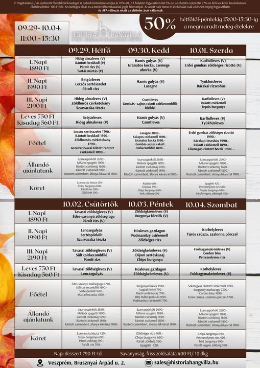 Menü fogyasztás: minden nap 11.00-14.00-ig
