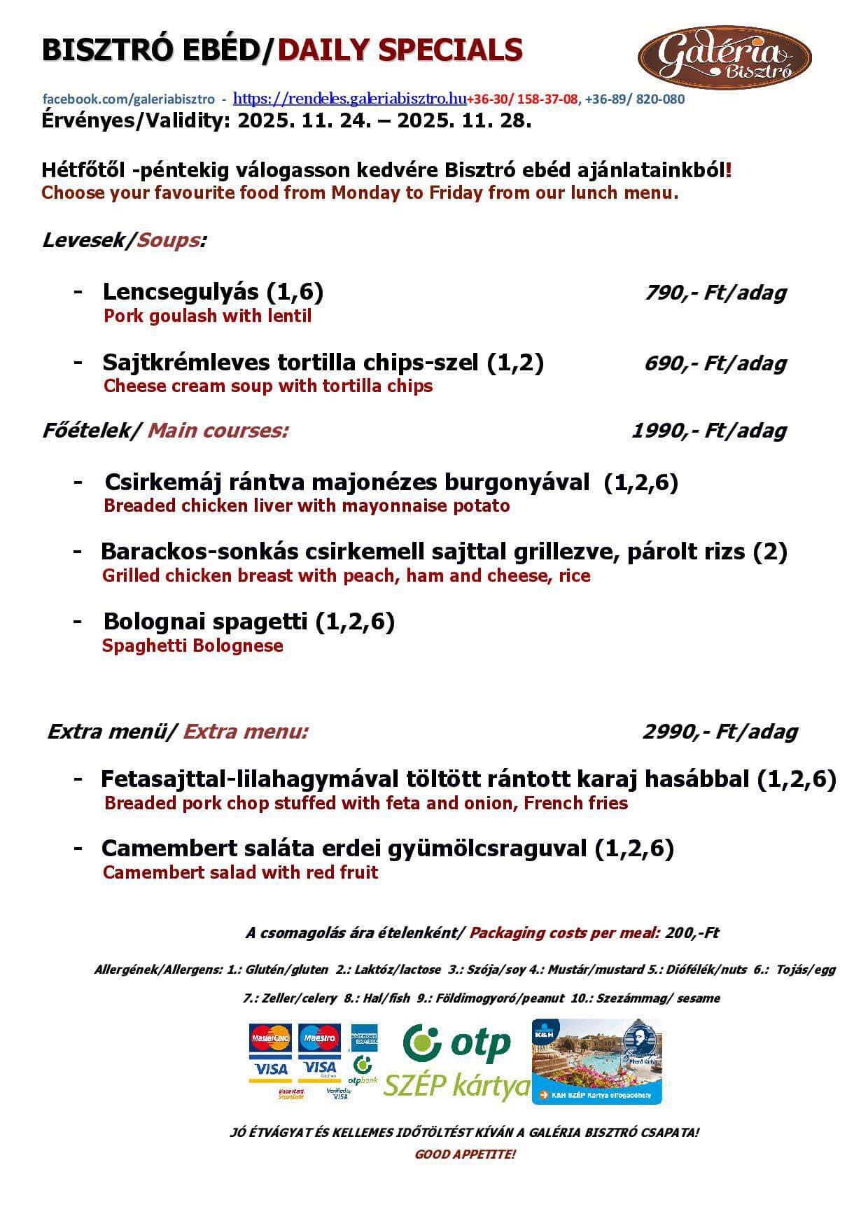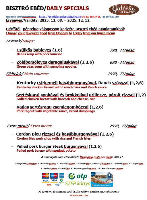Aktuális heti menü - Galéria Bisztró Pápa
