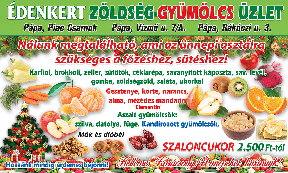 Édenkert Zöldség-Gyümölcs: 3 üzlet, 3 cél: Jó ár! Jó minőség! Elégedett Vásárlók! Kedvező árú minőségi zöldségek és gyümölcsök!