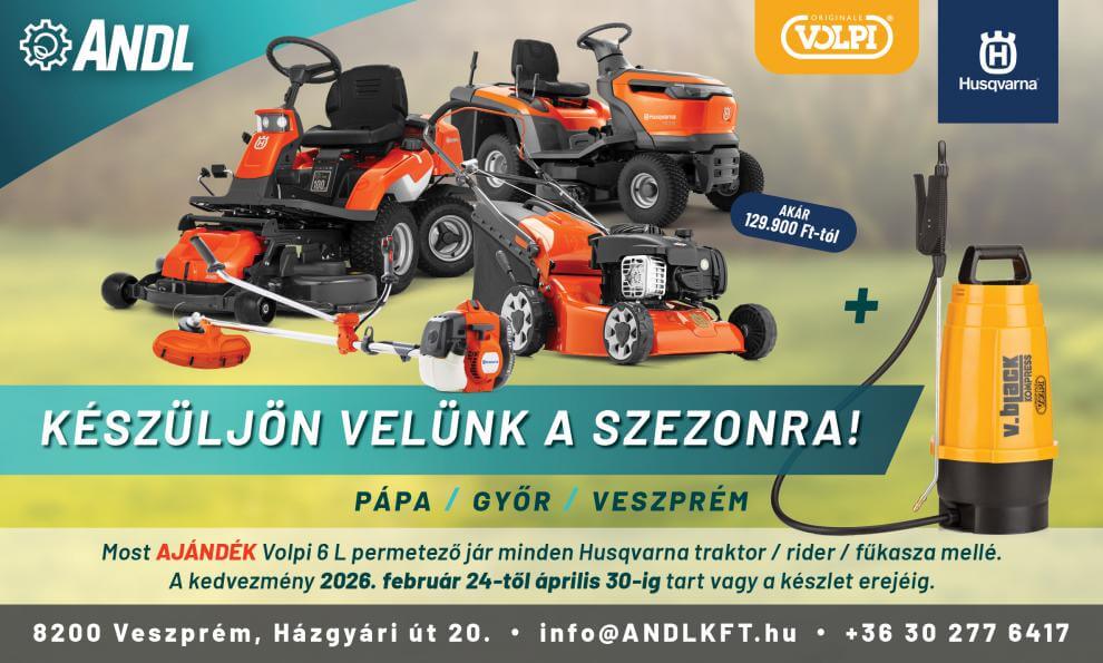 Most ajándék Volpi 6 L permetező jár minden Husquarna traktor / rider fűkasza mellé.