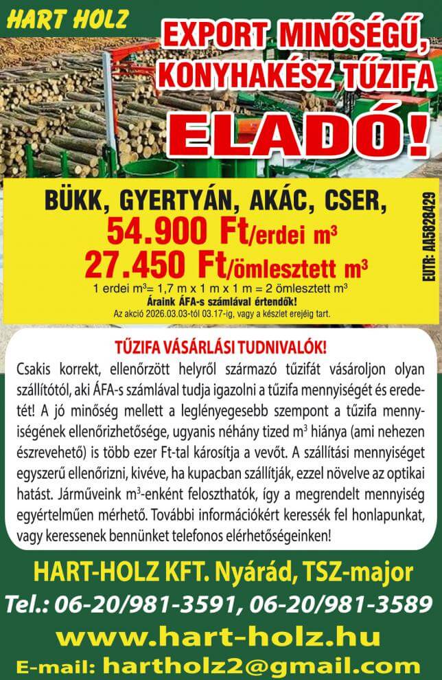Konyhakész tűzifa és Jó minőségű Fenyő Fűrészárú a Brennholz-nál!