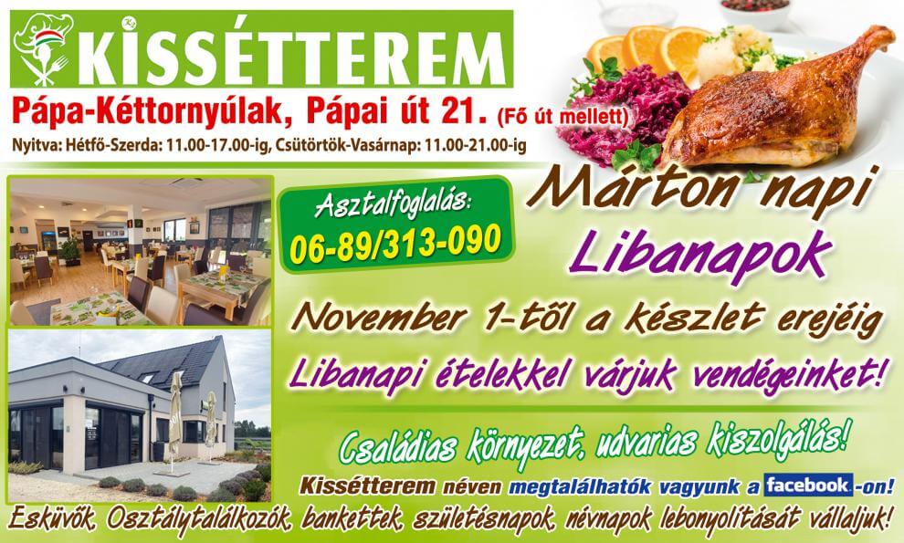 Ebéd lemondása előző nap 14 óráig lehetséges.
