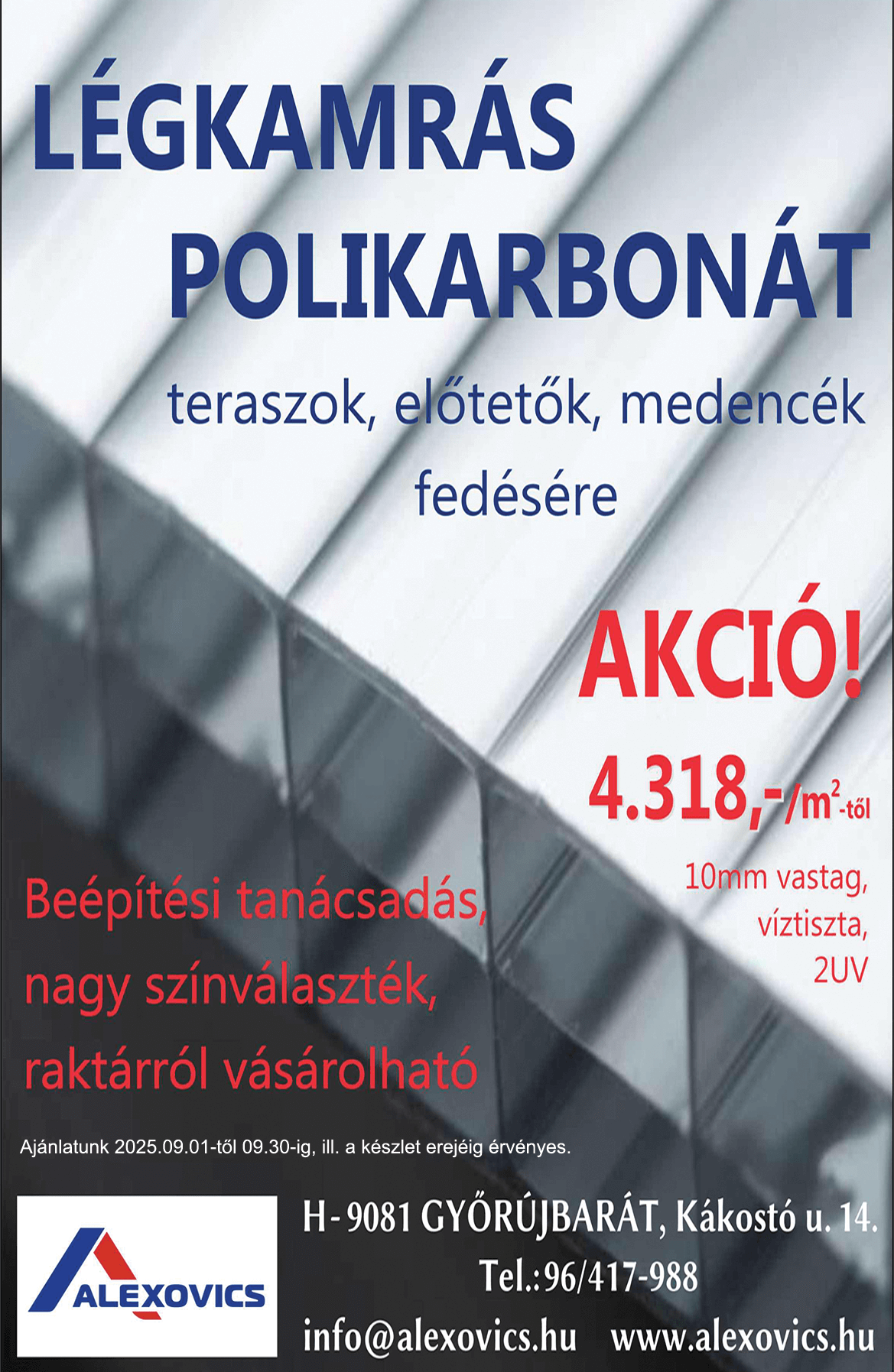 Légkamrás polikarbonát lemezek raktárról, azonnal!