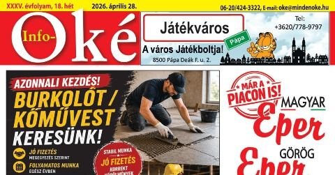 1.) Már 34. éve jelenik meg Pápán és környékén az Info-Oké c. kiadványunk minden héten,